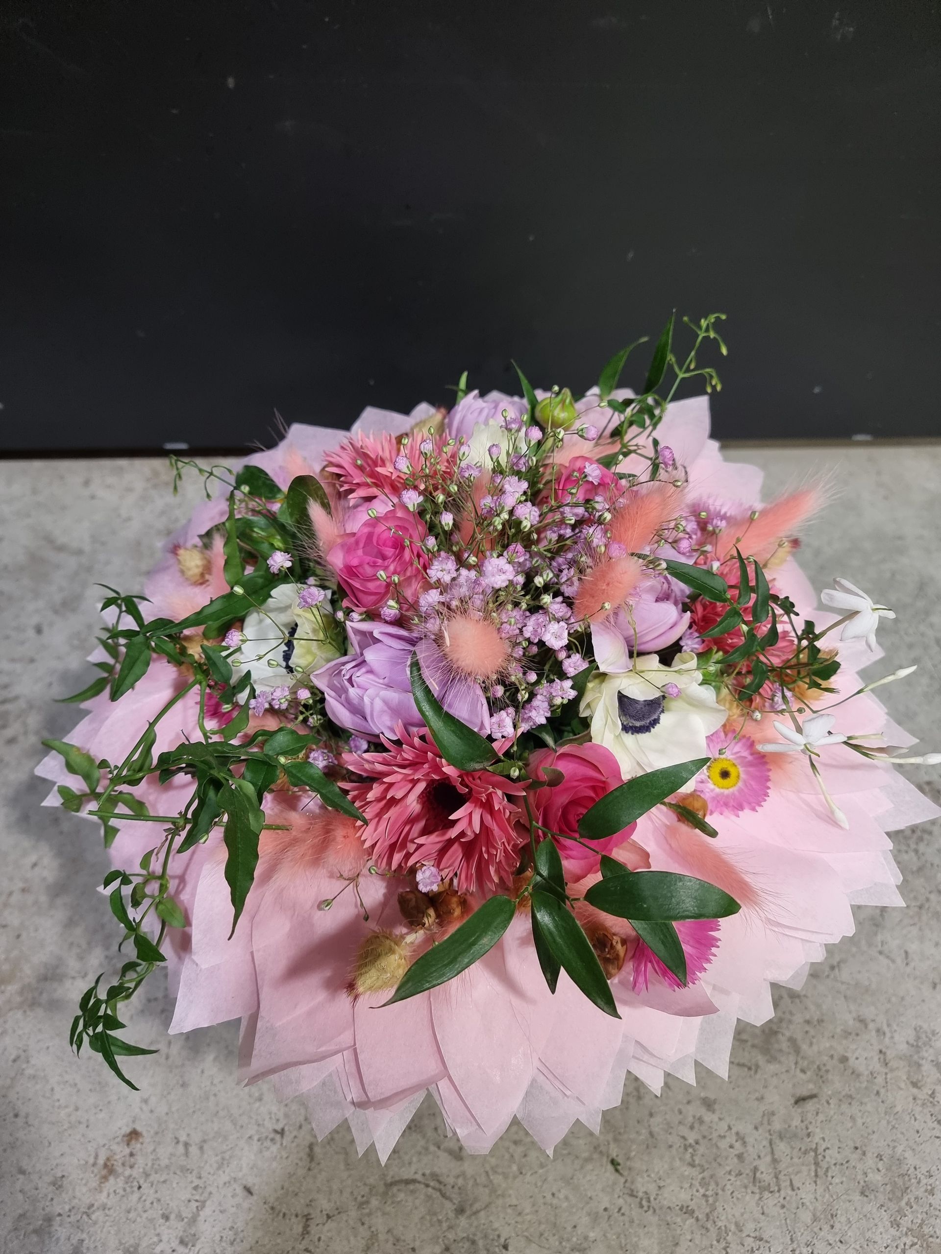 Découvrez en boutique, nos bouquets, nos plantes vertes et nos fleurs stabilisées, ainsi que des créations personnelles en matériaux naturels.